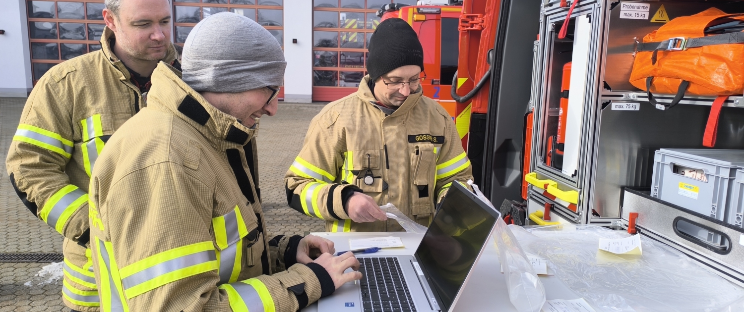 Der Tag begann bei der Freiwilligen Feuerwehr Neufahrn b. Freising wo die Einsatzkräfte tief in die fachliche Detailarbeit eintauchten. Hier wurde das Handwerk der Probenahme perfektioniert – vom Ziehen von Wasser- und Luftproben bis hin zu präzisen Wischtests auf Oberflächen und der Analyse von Bewuchs. Diese Arbeit erfordert höchste Konzentration, damit im Ernstfall exakte Daten für den Schutz der Bevölkerung vorliegen.