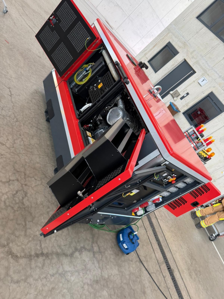 Bei den neuen Gerätesätzen handelt es sich um leistungsstarke Aggregate, die speziell für den Feuerwehreinsatz konzipiert sind. Sie dienen nicht nur der Beleuchtung von Einsatzstellen, sondern können gezielt zur Einspeisung in Gebäude oder zur Versorgung wichtiger technischer Anlagen genutzt werden. Eine Notstromkomponente setzt sich aus Netzersatzanlagen für Insellösungen und Einspeisebetrieb sowie umfangreichen Zubehör (Beleuchtung, Kabel, Messgeräte, etc.) zusammen. Die Stationierung im Landkreis Altötting stellt sicher, dass die Komponente im Bedarfsfall schnell in der Region sowie überörtlich zum Einsatz gebracht werden kann.